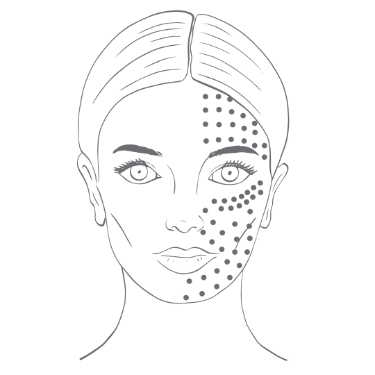 Микроболюсная, в зоне пигментации более поверхностно и компактно